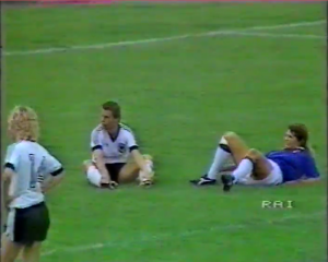 Footage of the entire match exists at the Calcio Donne website here (please give ’em the hits). The 3–1 result mirrored the 1982 FIFA World Cup final between the nations. Hapless Antonio Cabrini, the future Italian women’s coach, missed a penalty in that game.